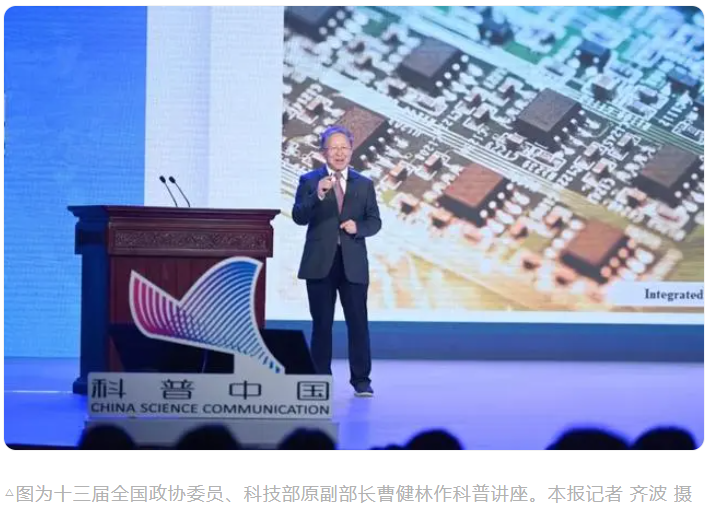 “芯片問(wèn)題是事關(guān)百年發(fā)展的長(zhǎng)期戰(zhàn)略問(wèn)題,不是短期應(yīng)急問(wèn)題,必須持之以恒去發(fā)展。”“要充分發(fā)揮制度優(yōu)勢(shì),集中優(yōu)勢(shì)隊(duì)伍持續(xù)攻關(guān)。”“要敢于開(kāi)辟新賽道,打造新生態(tài),推進(jìn)‘再全球化’。”……9月25日下午,寬敞明亮的全國(guó)政協(xié)禮堂里,十三屆全國(guó)政協(xié)委員、教科衛(wèi)體委員會(huì)副主任曹健林正站在舞臺(tái)中央巨大的顯示屏前,以“同心協(xié)力,補(bǔ)短揚(yáng)長(zhǎng),開(kāi)拓中國(guó)特色的集成電路產(chǎn)業(yè)發(fā)展道路”為題,為坐在臺(tái)下的全國(guó)政協(xié)委員、地方政協(xié)委員、高校學(xué)生、科研工作者等700余名觀眾作科普講座。