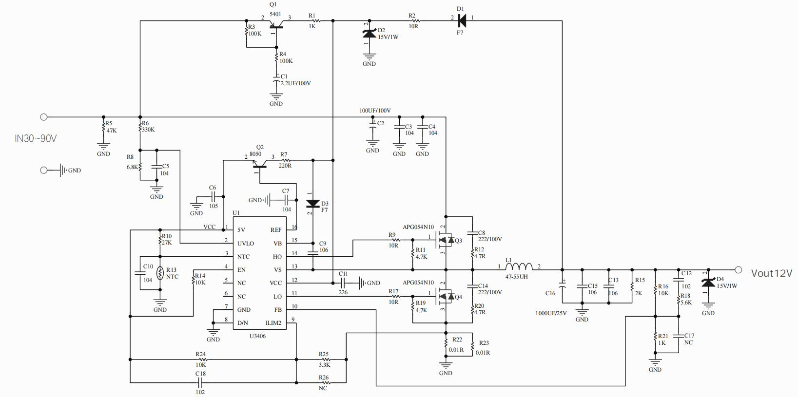 •產品描述:U3406 400V同步降壓控制器通過高輸入電壓源或高壓瞬變輸入軌進行調節,最大限度地減少了對外部浪涌抑制組件的需求。高側開關最小導通時間為60 ns,具有較大的降壓比,可實現從100V標稱輸入到低壓軌的直接降壓轉換,從而降低系統復雜性和解決方案成本。U3406在輸入電壓低至8.5V的情況下繼續工作,如果需要,可以接近100%的占空比,使其成為高性能100V電池汽車應用,ADAS(環視ECU)和HEV/EV系統的絕佳選擇。強制pwm (FPWM)操作消除了開關頻率變化,以最大限度地減少EMI,而用戶可選擇的二極管仿真降低了輕負載條件下的電流消耗。測量低側MOSFET的壓降或使用可選的電流檢測電阻提供逐周期過流保護。可調開關頻率高達0.5MHz,可以同步到外部時鐘源,以消除噪聲敏感應用中的拍頻。
