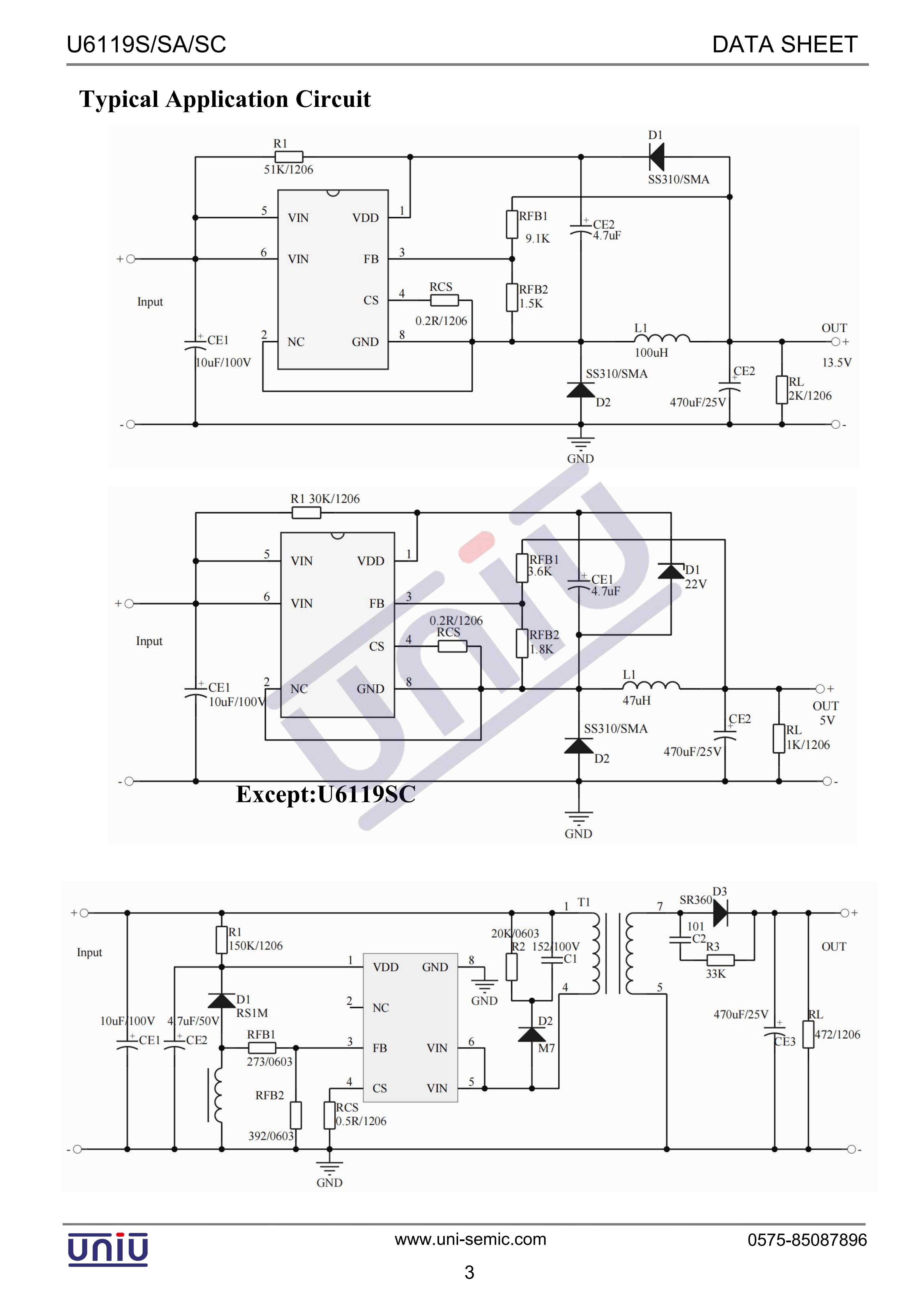 U6119S/SA/SC系列是一個單片控制電路,提供DC-DC電壓轉換的主要功能。該器件包括一個內部溫度補償基準,比較器,占空比控制振蕩器與有源限流電路,驅動器和大電流輸出開關。輸出電壓為ADJ Vol, no集成兩個外部電阻,參考精度為2%。采用最少數量的外部元件,U6119S/SA/SC系列器件專為降壓應用而設計。